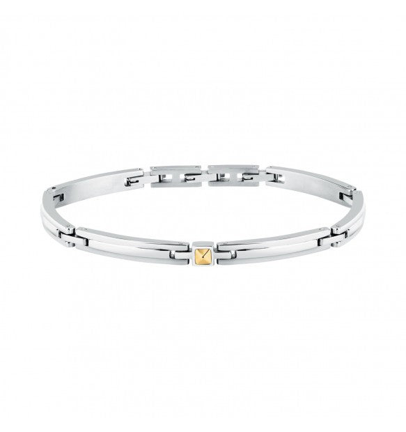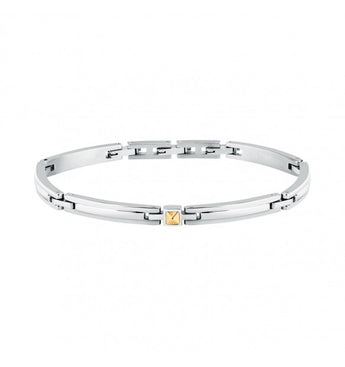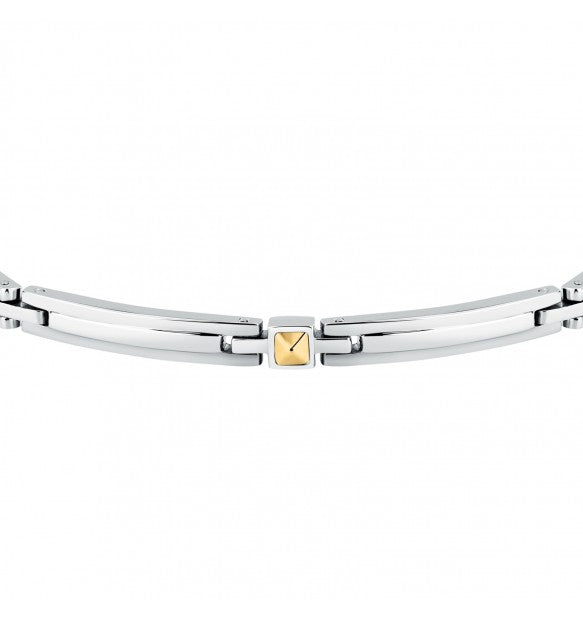 Bracciale Morellato SABY02 che incarna l'eleganza senza compromessi. La combinazione di acciaio inossidabile e placcatura oro 750 giallo crea un contrasto sofisticato, trasmettendo un'aura di lusso autentico. I dettagli pyramid stud conferiscono personalità e carattere, trasformando ogni gesto in un'affermazione di stile. Con lunghezza regolabile 18+3 cm, si adatta perfettamente al tuo polso. Un accessorio versatile che eleva qualsiasi look, dal casual all'elegante, permettendoti di esprimere la tua raffinatezza in ogni occasione.
