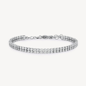 Bracciale tennis doppio filo in acciaio inossidabile che combina eleganza e versatilità. Il design raffinato con due file di cristalli scintillanti crea un effetto luminoso che cattura la luce ad ogni movimento. Perfetto per valorizzare il polso con uno stile sofisticato, si adatta facilmente a qualsiasi occasione, dal quotidiano alle serate speciali. La qualità dell'acciaio garantisce durabilità e resistenza nel tempo, mantenendo intatto lo splendore del gioiello. Un accessorio imprescindibile che trasforma ogni look con un tocco di brillantezza.