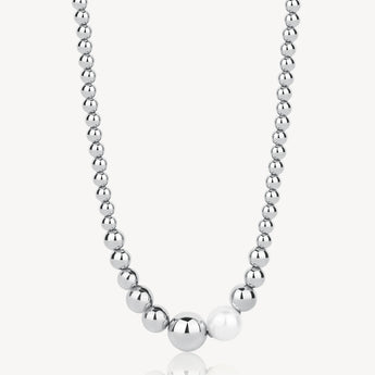 Eleganza minimalista che cattura lo sguardo: questa collana donna in acciaio inossidabile combina il fascino di delicate palline degradé con una raffinata perla di conchiglia posizionata sul davanti. Un accessorio versatile che si adatta perfettamente a ogni occasione, dal quotidiano alle serate speciali. La qualità dell'acciaio garantisce durabilità nel tempo, mentre il design sofisticato la rende un pezzo imprescindibile nella tua collezione di gioielli. Indossa stile e personalità con questa collana che valorizza il tuo look con semplicità e classe.