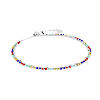 Lasciati conquistare dalla raffinata eleganza della Cavigliera Donna Marlù - Summer, un accessorio che celebra la stagione estiva con uno stile unico. Realizzata in acciaio, questa cavigliera presenta una doppia catena: una catena a grumetta impreziosita da sfere in acciaio e una seconda catena composta da myuki multicolore che donano un tocco di vivacità e colore. Con una lunghezza totale di 25,8 cm, questa cavigliera è facilmente regolabile grazie al cursore, adattandosi perfettamente alla tua caviglia con una lunghezza minima di 21,3 cm. Un accessorio perfetto per chi ama distinguersi con dettagli unici e alla moda.