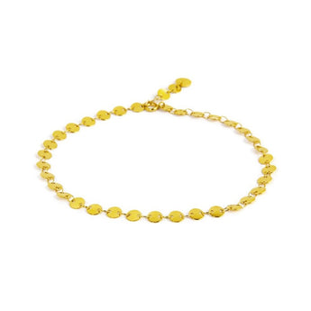 Emoziona il tuo look estivo con la Cavigliera Marlù - Summer, un gioiello che unisce raffinatezza e stile. Realizzata in acciaio PVD oro, questa cavigliera presenta una catena a disco piatto che cattura la luce in ogni movimento. Con uno spessore del disco di 0,40 mm e un'altezza della catena di 5 mm, offre un equilibrio perfetto tra delicatezza e presenza. La lunghezza totale di 25,8 cm assicura una vestibilità confortevole, mentre il logo Marlù all'estremità aggiunge un tocco di autenticità. Perfetta per ogni occasione, questa cavigliera è l'accessorio ideale per chi desidera distinguersi con eleganza.