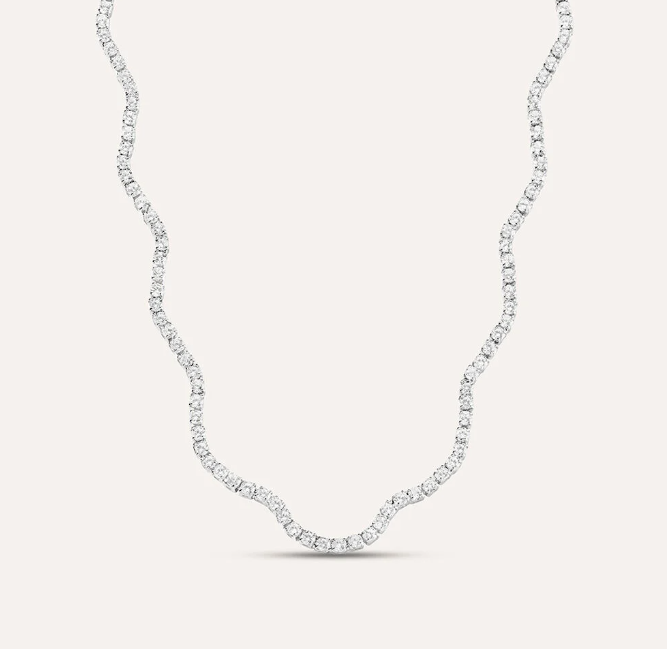 Eleganza senza compromessi con questa collana donna che cattura la luce in ogni movimento. La maglia tennis in ottone, impreziosita da cristalli bianchi brillanti, crea un effetto scintillante che valorizza il décolleté con raffinatezza. La lunghezza regolabile di 39+5 cm si adatta perfettamente a ogni occasione, dal quotidiano alle serate speciali. Un accessorio versatile che trasforma qualsiasi outfit in un look sofisticato e luminoso, perfetto per chi desidera brillare con stile.