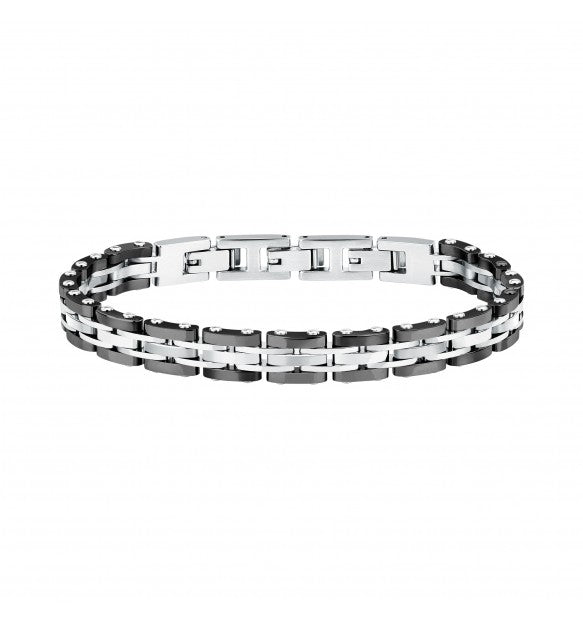 Bracciale sofisticato che unisce eleganza moderna e praticità. Realizzato in acciaio inossidabile rodiato ipoallergenico abbinato a ceramica nera, garantisce comfort e durabilità nel tempo. Con una lunghezza totale di 21,5 cm regolabile fino a 19 cm, si adatta perfettamente al tuo polso. La chiusura con maglie rimovibili consente una personalizzazione facile e veloce. Perfetto per chi ricerca uno stile contemporaneo senza compromessi sulla qualità. Parte della collezione Ceramic, un'affermazione di gusto raffinato.