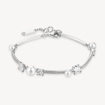 Bracciale semirigido che unisce eleganza e versatilità. Realizzato in argento rodiato 925‰, garantisce durabilità e una finitura luminosa che resiste nel tempo. Le perle di conchiglia donano un tocco naturale e sofisticato, mentre i cubic zirconia catturano la luce con brillantezza diamantata. Perfetto per completare qualsiasi look, dal quotidiano alle occasioni speciali. Un accessorio che valorizza il polso con stile senza compromessi.