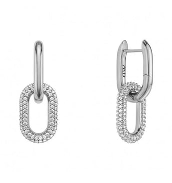Eleganti orecchini che catturano la luce con stile raffinato. Realizzati in acciaio anallergico, presentano elementi ovali che garantiscono comfort durante tutto il giorno. Il dettaglio pendente impreziosito da pavé di cristalli bianchi aggiunge un tocco di brillantezza sofisticata, perfetto per valorizzare il tuo look sia in occasioni speciali che nella quotidianità. La pratica chiusura con gancio assicura una vestibilità sicura e facile. Un accessorio versatile che unisce qualità, eleganza e durabilità.
