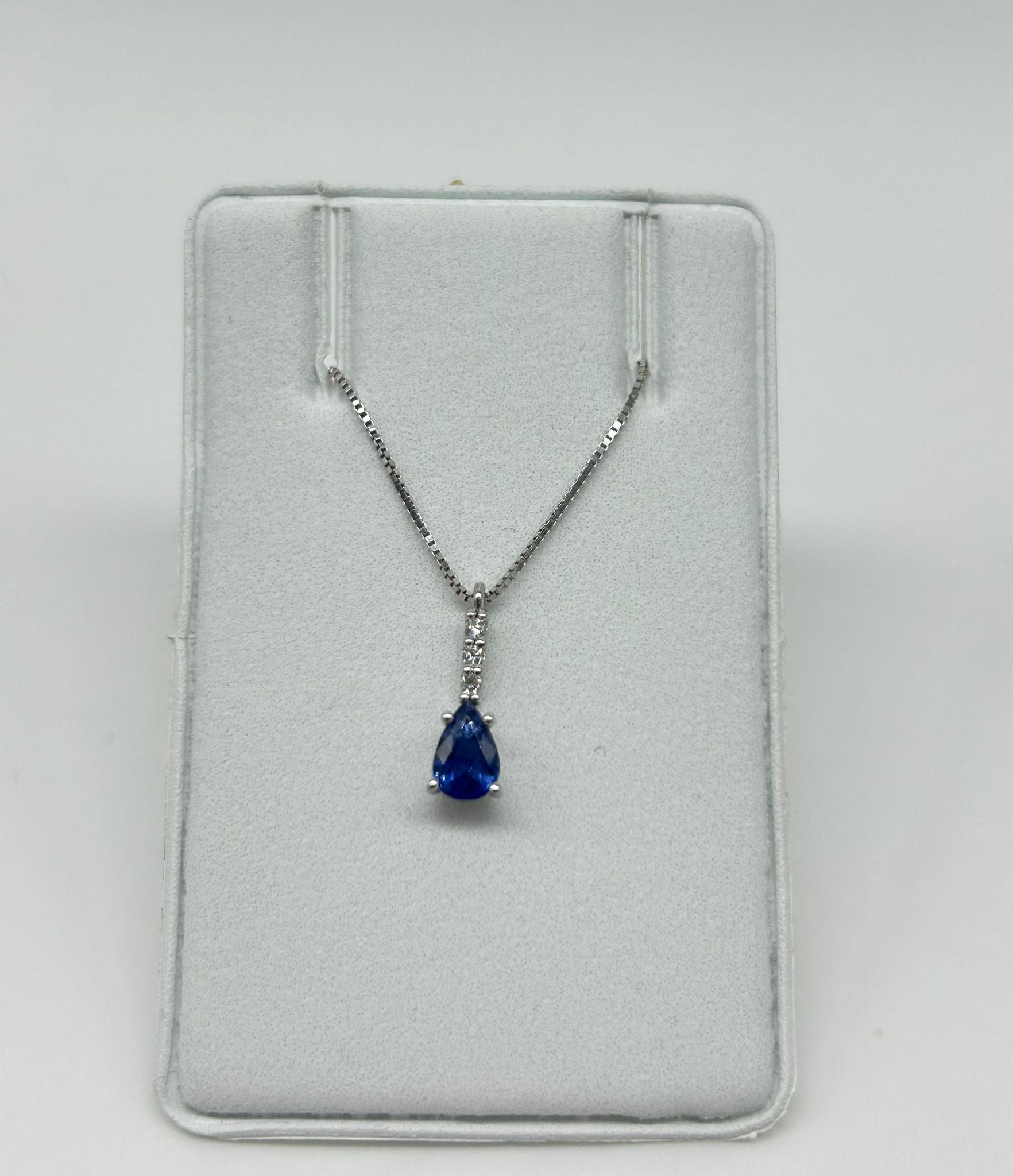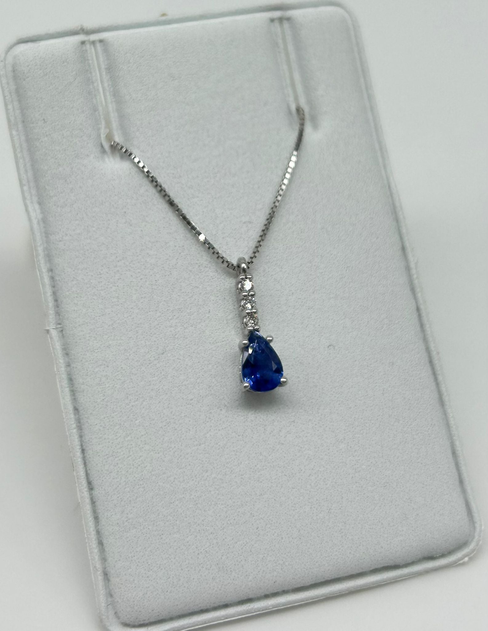 - Pietra: Zaffiro taglio goccia e diamanti taglio brillante
