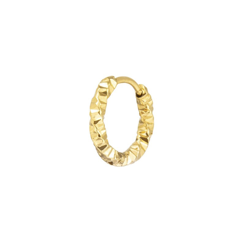 Monorecchino elegante in acciaio inossidabile caratterizzato da un design a cerchio ritorto con trama diamantata che cattura la luce. Perfetto per chi ama uno stile sofisticato e versatile, questo pezzo si distingue per la sua lavorazione raffinata e la qualità dei materiali. Indossalo singolo per un look moderno e audace, oppure abbinalo al suo gemello per un effetto classico. Una scelta ideale per completare qualsiasi outfit con un tocco di lusso accessibile.