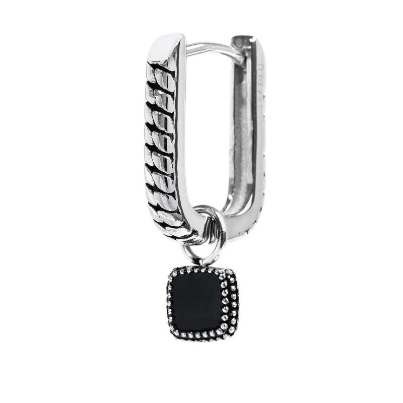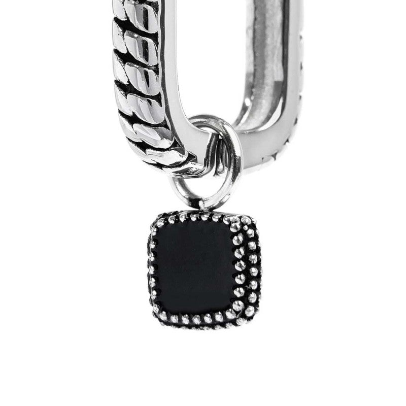 Distinguersi con un tocco di stile è possibile grazie al mono orecchino Marlù Vision. Questo accessorio, pensato per l'uomo moderno, è realizzato in acciaio con una particolare trama ovale e una finitura in black oil opaco, che conferisce un aspetto sofisticato e contemporaneo. Il pendente quadrato è incorniciato da una trama puntinata, che esalta il centro in smalto nero, rendendo questo orecchino un vero capolavoro di design. La praticità è garantita dalla chiusura a pressione, mentre il logo Marlù, laserato sul retro, assicura l'autenticità del prodotto. Con una lunghezza totale di 2,5 cm, questo gioiello è ideale per chi cerca un accessorio distintivo e di qualità.