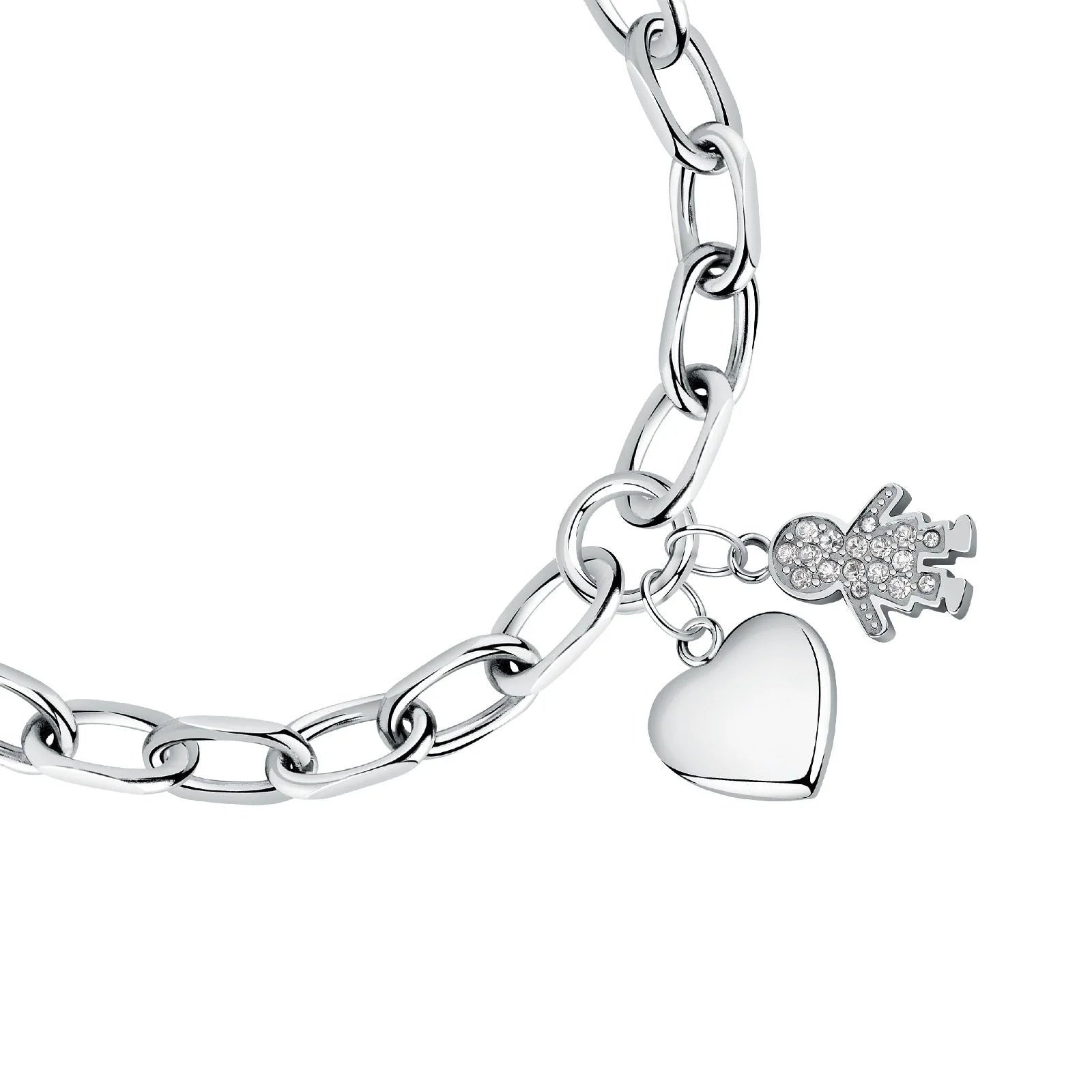 Esprimi i tuoi sentimenti con il Bracciale Donna Morellato - Talismani, un gioiello che unisce eleganza e significato. Realizzato in acciaio inossidabile, questo bracciale presenta un raffinato simbolo di un bambino, perfetto per celebrare momenti speciali. La sua misura regolabile di 16 + 3 cm assicura una vestibilità comoda per tutti i polsi. Il design è ulteriormente impreziosito da cristalli bianchi, che aggiungono un tocco di luce e raffinatezza. Ogni pezzo è accompagnato da un certificato di autenticità, confermando la qualità e l'originalità del prodotto. Con il suo colore silver, è un accessorio versatile per ogni occasione. Sorprendi chi ami con un gioiello della collezione Morellato Talismani, simbolo di stile e affetto.