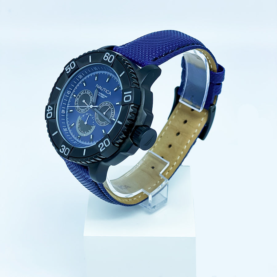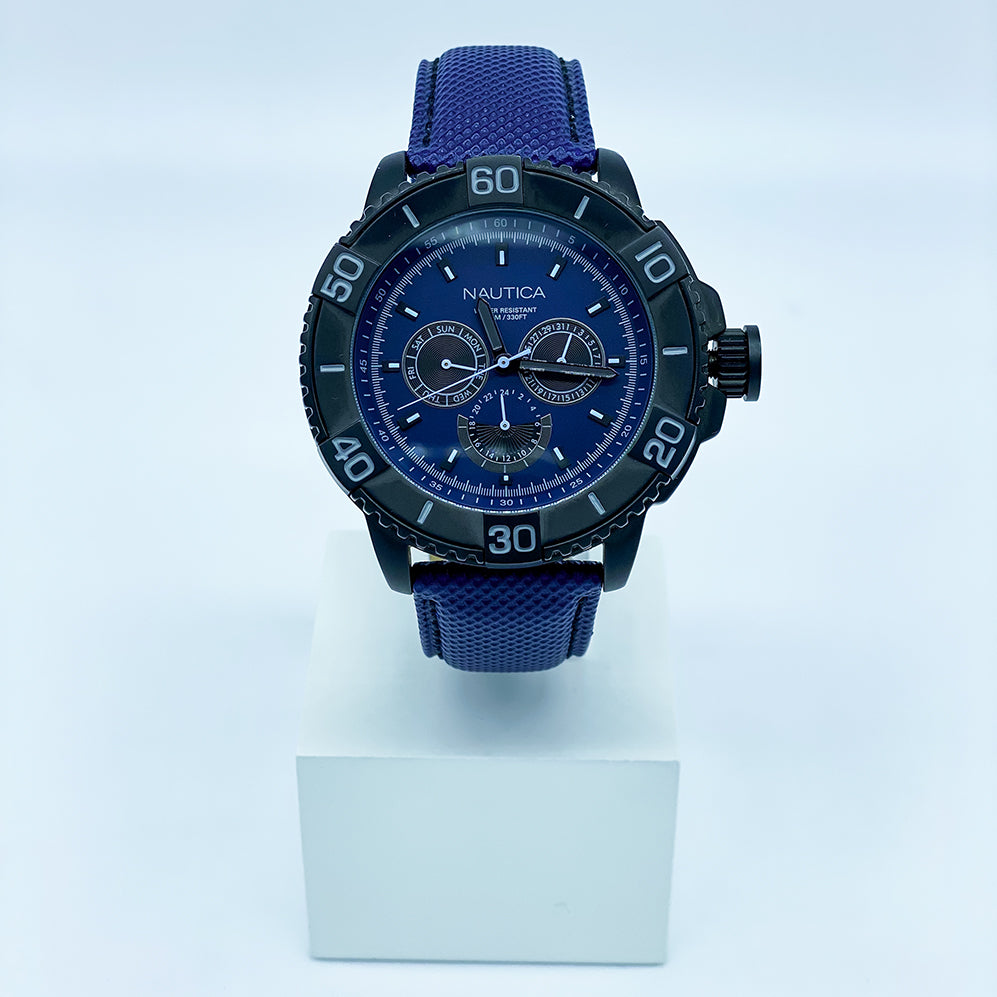 Immergiti nello stile marittimo con l'Orologio Nautica Chrono Quarzo - OOU001. Questo segnatempo unisce eleganza e funzionalità con un quadrante blu che cattura l'essenza degli oceani. La cassa in acciaio brunito offre un tocco di robustezza, mentre il cinturino in tessuto tecnico garantisce comfort e resistenza. Dotato di movimento al quarzo, questo orologio assicura precisione in ogni momento. Perfetto per l'uomo moderno che cerca un accessorio sofisticato per ogni occasione, il design di questo orologio riflette il carattere avventuroso e la tradizione del brand Nautica.
