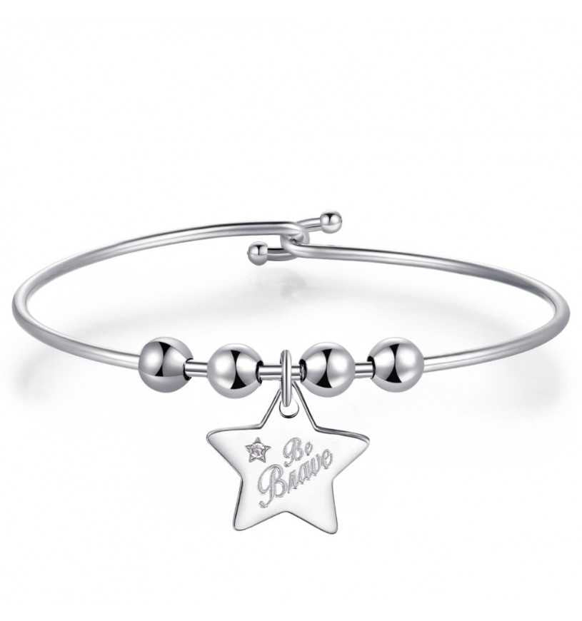 Scopri il bracciale rigido Sagapò Be My Always, un gioiello che racchiude coraggio e determinazione. Realizzato in acciaio anallergico 316L, garantisce comfort e sicurezza anche per le pelli più sensibili. La stella centrale, simbolo di speranza, reca l'incisione "Be Brave" e brilla grazie al cristallo bianco che la impreziosisce. Con un diametro di 60 mm, si adatta perfettamente al polso e diventa il tuo compagno quotidiano di stile. Un accessorio che non è solo bellezza, ma un promemoria costante di trovare la forza dentro di te.