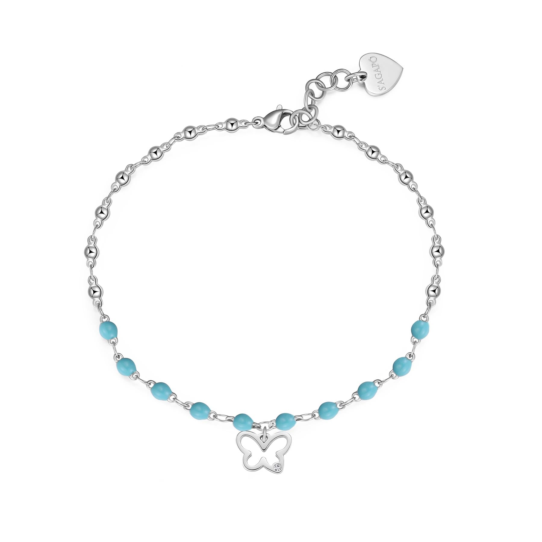 Lasciati avvolgere dalla delicatezza della cavigliera Sagapò VIBES, un gioiello che incarna eleganza e freschezza. Realizzata in acciaio resistente, questa cavigliera presenta un design raffinato adornato da palline smaltate azzurre che aggiungono un tocco di colore e vitalità. Il pendente a forma di farfalla simboleggia leggerezza e libertà, rendendo questo accessorio perfetto per chi ama esprimere la propria personalità. Ideale per ogni stagione, la cavigliera Sagapò VIBES è il complemento perfetto per ogni outfit, sia casual che elegante. Scegli la qualità e lo stile del brand Sagapò per aggiungere un dettaglio unico e chic al tuo look.