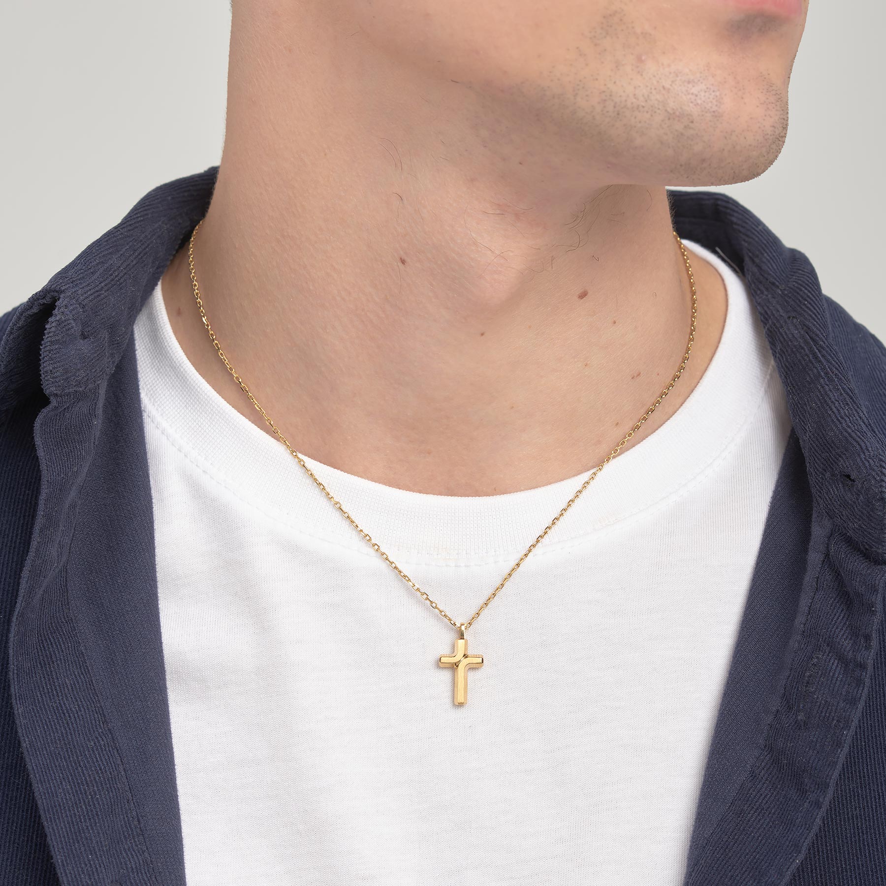 Eleganza e significato si incontrano in questa collana da uomo della collezione Backliner. Realizzata in acciaio 316L con finitura PVD oro 14K, combina perfettamente le texture lucida e satinata per un effetto sofisticato. Il pendente a forma di croce aggiunge un tocco simbolico e spirituale al design. Con una lunghezza di 480mm, si adatta comodamente al collo e rappresenta un accessorio versatile per chi cerca qualità e stile. Un pezzo che unisce durabilità, eleganza e significato profondo.