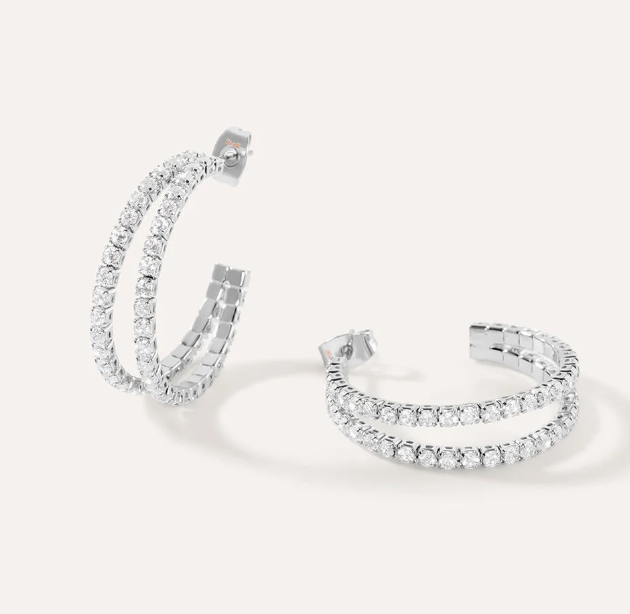 Orecchini a cerchio che catturano la luce con eleganza senza tempo. Realizzati in metallo pregiato con cristalli bianchi brillanti, questi orecchini dal diametro di 25 mm sono perfetti per chi desidera un accessorio versatile e raffinato. La loro linea essenziale si adatta a qualsiasi occasione, dal quotidiano alle serate speciali, regalando un tocco di luminosità al viso. Un must-have nella collezione di gioielli di ogni donna che apprezza la qualità e lo stile.